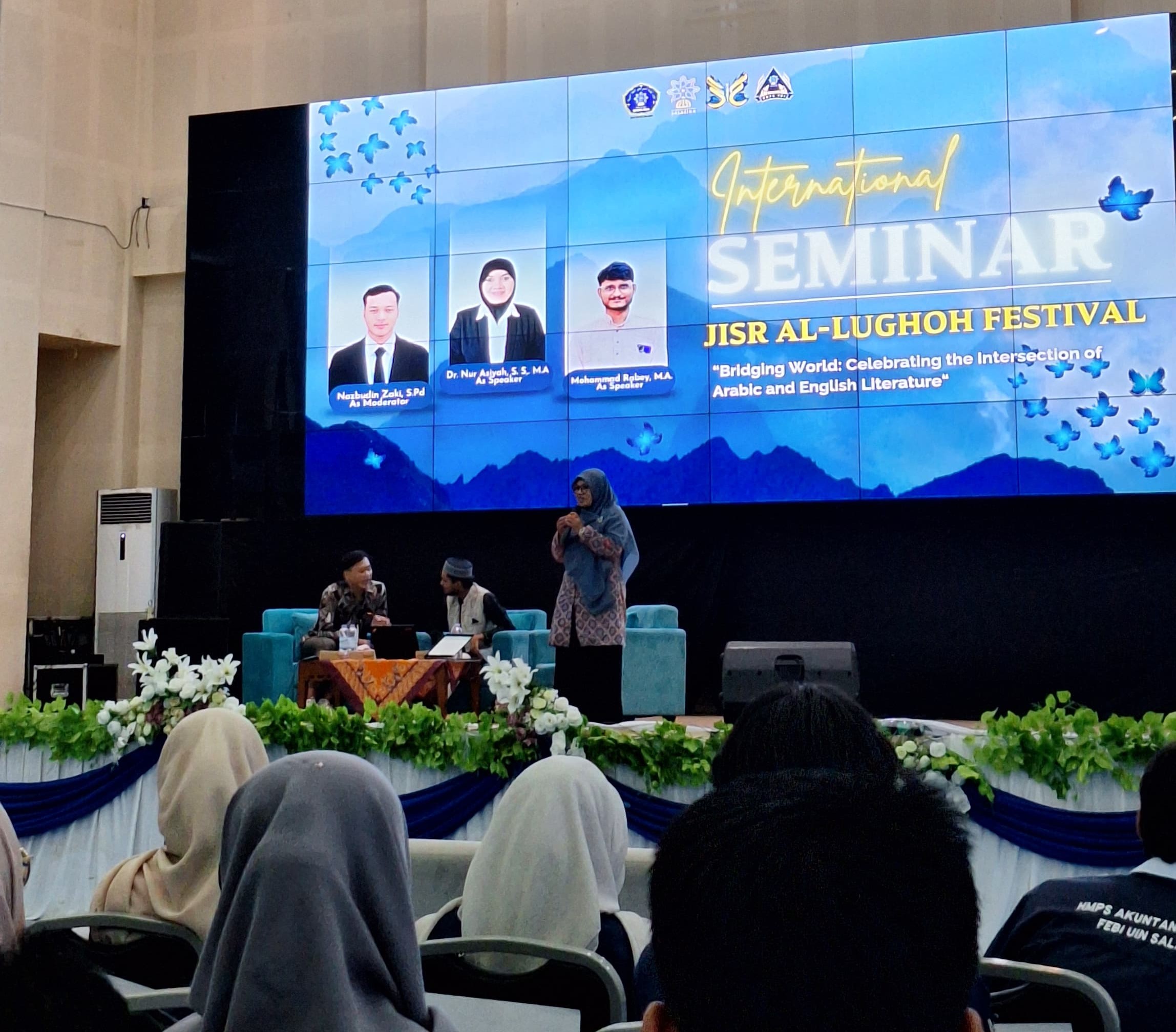 Tema “Bridging World: Celebrating The Intersection of Arabic and English Literature” diangkat untuk menyoroti pentingnya kedua bahasa tersebut dalam konteks global. Mohammad Rabey menyampaikan dalam seminarnya mengenai kemiripan struktur kebahasaan antara Arab dan Inggris, terutama dalam percakapan dan penyusunan kalimat sederhana.