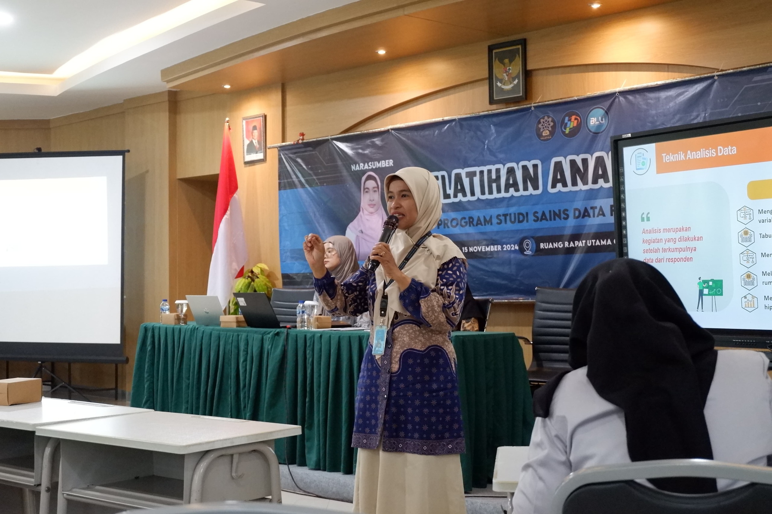 Salatiga-Jumat 15 November 2024, Program Studi Sains Data Universitas Islam Negeri Salatiga menggelar kegiatan Pelatihan Analisis Data yang bertempat di Ruang Rapat Utama Lantai 1 Gedung K.H. Ahmad Dahlan UIN Salatiga. Kegiatan ini terdiri dari 55 peserta yang dihadiri oleh beberapa guru dan seluruh mahasiswa Program Studi Sains Data.