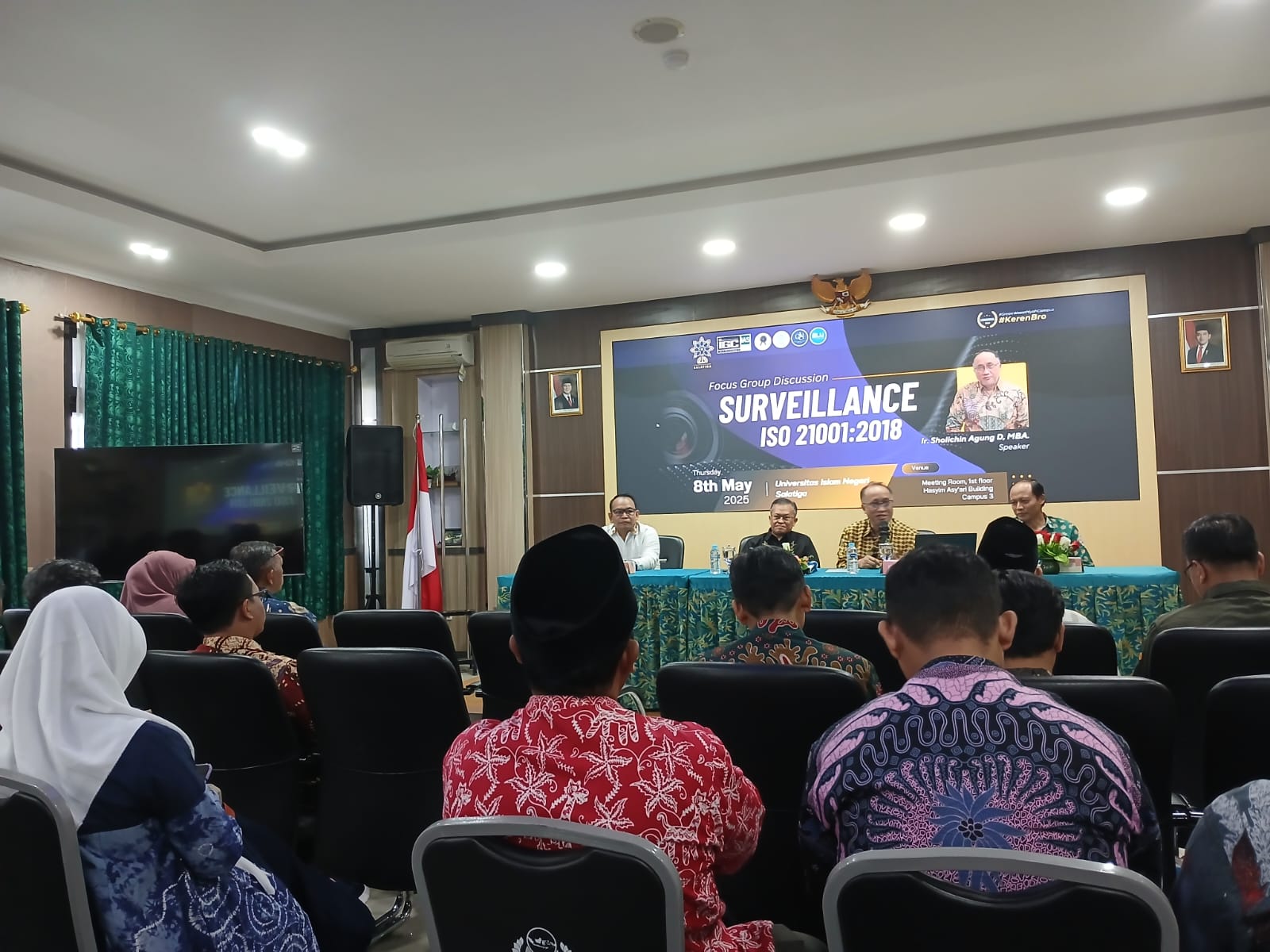 Salatiga, 8 Mei 2025 – Dalam upaya mewujudkan tata kelola perguruan tinggi yang berstandar internasional, Program Studi Sains Data UIN Salatiga turut ambil bagian dalam Focus Group Discussion (FGD) Surveillance ISO 21001:2018 yang digelar di Ruang Rapat Utama Lantai 1 Gedung K.H. Hasyim Asy’ari Kampus Terpadu UIN Salatiga, pukul 08.00 hingga 11.00 WIB.