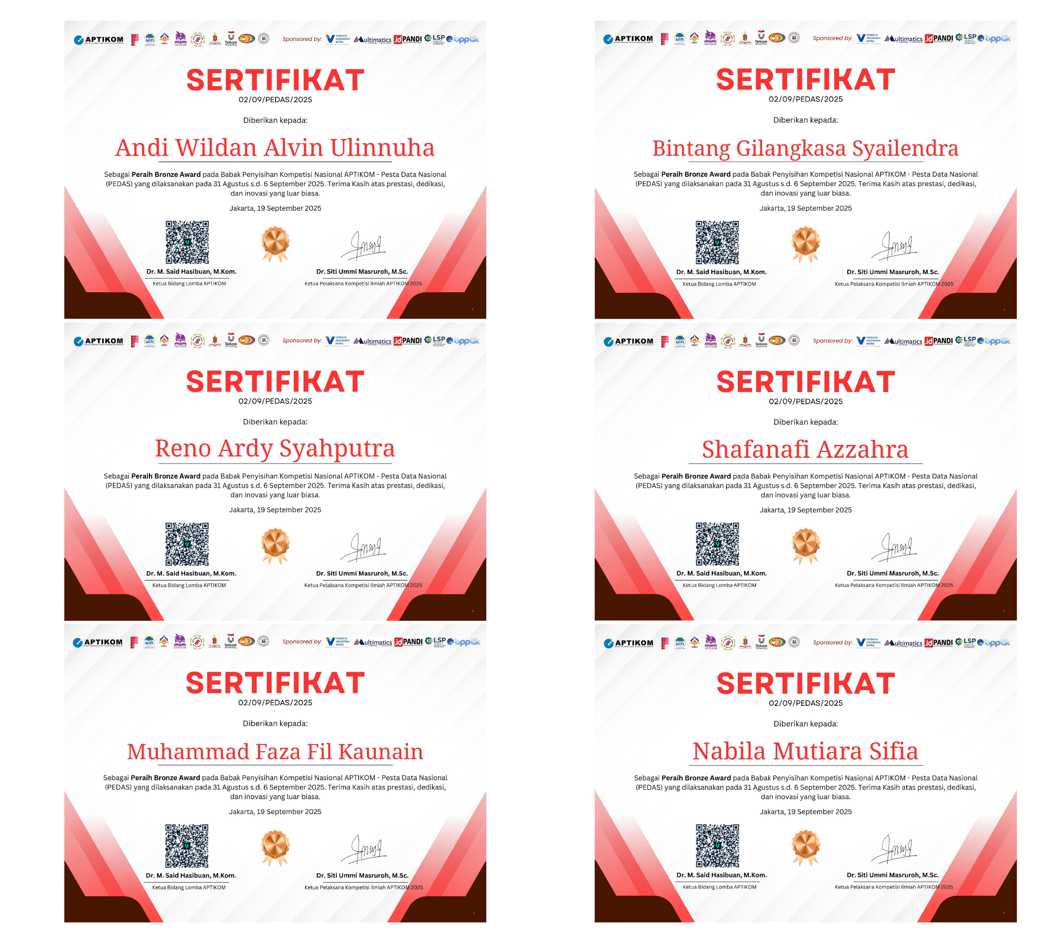 Salatiga — Kabar membanggakan datang dari Program Studi Sains Data UIN Salatiga. Dua tim perwakilan berhasil menorehkan prestasi dalam ajang Pesta Data Nasional (PEDAS) 2025, yang diselenggarakan oleh Asosiasi Pendidikan Tinggi Ilmu Komputer Indonesia (APTIKOM) bekerja sama dengan UIN Syarif Hidayatullah Jakarta.